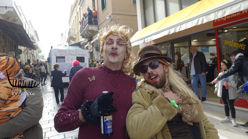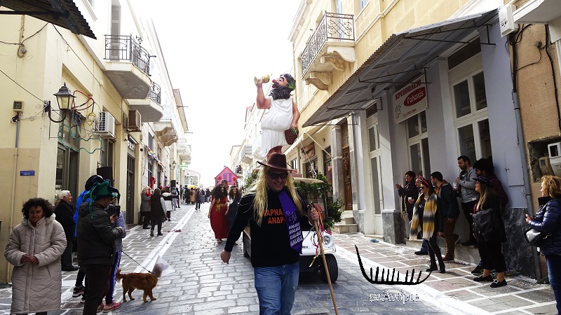 Α, μην το ξεχάσουμε ένας ξυλοπόδαρος άνοιξε την παρέλαση. Κι ακολούθησε άρμα με αρχαίους Έλληνες και κρασοκατάνυξη. Την ίδια ώρα ο πολύς κόσμος ήταν ακόμα στην πλατεία Γηροκομείου...