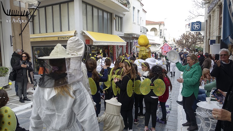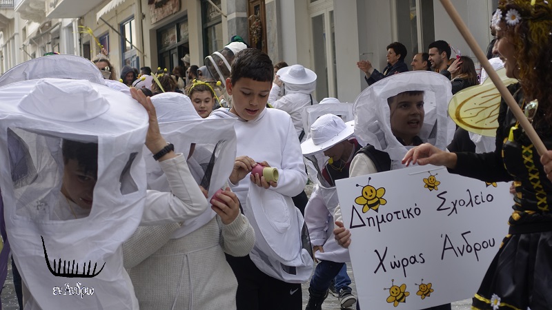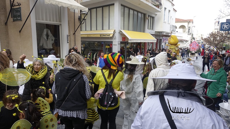 Οι μέλισσες του δημοτικού σχολείου Χώρας κυριάρχησαν λόγω πλήθους και πάθους και εντυπωσιακών κουστουμιών μελισσών και μελισσοκόμων.
