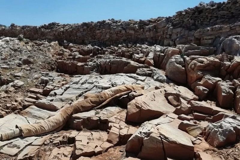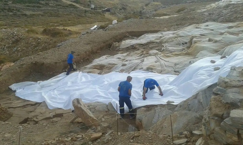 Strofilas excavation: Covering the rock carvings. Credit: Facebook/Christina Tselementoy