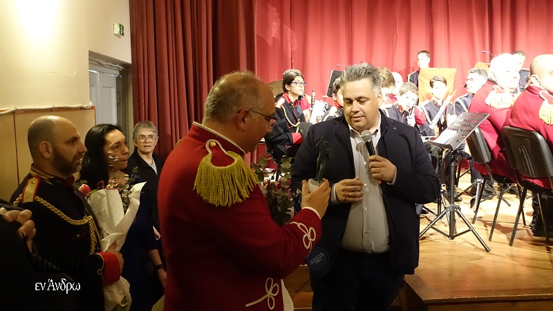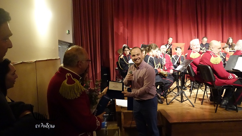 Και ο έπαρχος Άνδρου αναμνηστική πλακέτα για την παρουσία τους στις τριήμερες εκδηλώσεις της Άνδρου. Και η Φιλαρμονική Χαλανδρίου έδωσε έπαινο στον Μουσικό Σύλλογο Άνδρου μέσα σε κλίμα έντονης συγκίνησης και από τις δύο πλευρές.