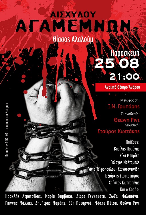 Θέατρο: «Αγαμέμνων» του Αισχύλου, από τον Ερασιτεχνικό Θίασο Άνδρου, σκην. Θεώνη Ριντ