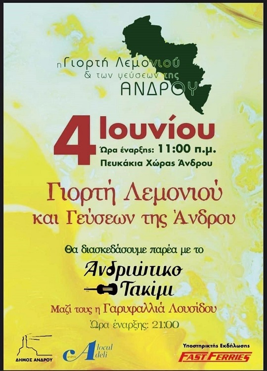 Ξεκίνησε στις 11:30 το πρωί της Κυριακής 4 Ιουνίου 2023 η γιορτή του λεμονιού και των γεύσεων της Άνδρου στα Πευκάκια της Χώρας στην Άνδρο με την συμμετοχή συλλόγων (Μενήτων, Λειβαδίων κλπ) και παραγωγών από όλη την Άνδρο. Πολυποίκιλες γεύσεις διανθισμένες με λεμόνια γέμισαν το μικρό πάρκο, που μετά από αχρηστία χρόνων βρήκε κι αυτό προορισμό. Την προηγούμενη φορά που διοργανώθηκε σε αυτό τον ωραίο χώρο εκδήλωση ήταν πριν χρόνια από το Μουσείο Λαογραφίας Ματζαβελάκη.