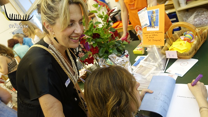 Στην αρχή και στο τέλος της εκδήλωσης η Δανάη Μπασαντή υπέγραψε αφιερώσεις στα ΄δεκάδες βιβλία που πωλήθηκαν στην εκδήλωση. Στη φωτογραφία η Δανάη υπογράφει βιβλίο της για την Τζούλια Σταυρίδου, πρόεδρος της ΑΜΚΕ "Φύλακες Άγγελοι" για παιδιά με ειδικές ανάγκες.