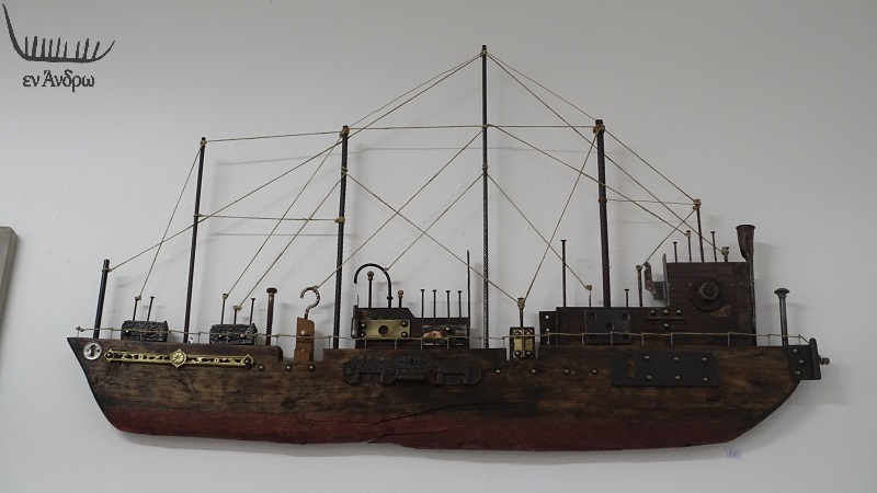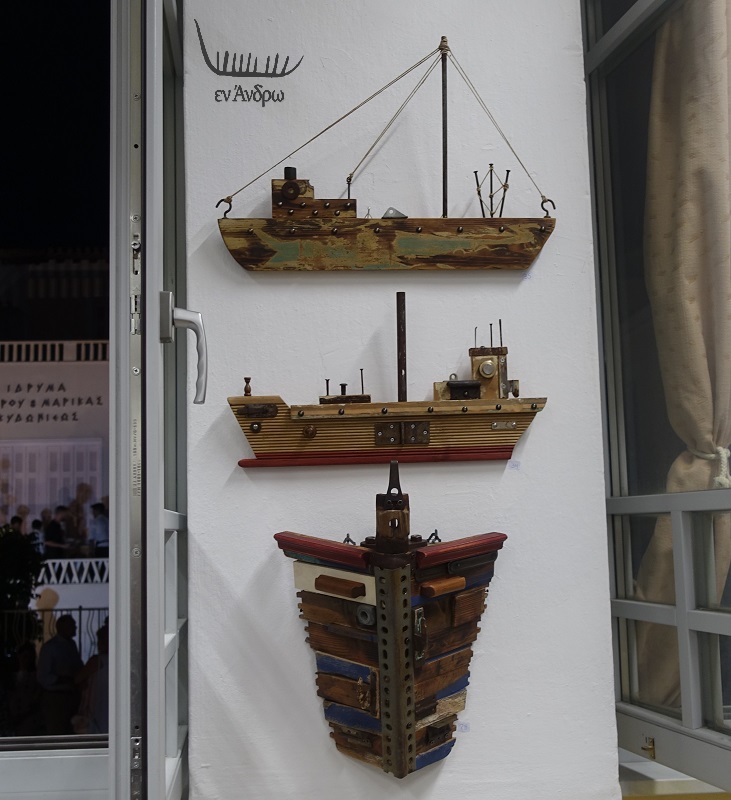 Ένα ταξίδι στο πέλαγος της φαντασίας που μόνο η αστείρευτη δημιουργικότητα του Γιώργου Ελευθερίου καταφέρνει με υλικά που οι άλλοι πετούν στα άχρηστα. Αυτός να τα παίρνει και δημιουργεί έναν ολόκληρο στόλο μοναδικών πλοίων που ταξιδεύουν τον θεατή και τον πελάτη που τα αγοράζει σε κόσμους μαγικούς. Σε ταξίδια μακρινά. Έτσι όμορφα κρεμασμένα στον τοίχο ενός σπιτιού ή ενός γραφείου. Εμείς πλέον διαθέτουμε ολόκληρο τοίχο με έργα του Ελευθερίου. Και δύο εξαιρετικά μικροέπιπλα που στολίζουν και τονίζουν την ταξιδιάρικη φύση ενός σπιτιού στην Άνδρο. Με αυτή την εμπειρία χαρήκαμε που κι εφέτος ο Ελευθερίου παρουσίασε υπέροχες συνθέσεις του στο Εμπειρίκο Γυμνάσιο Άνδρου.