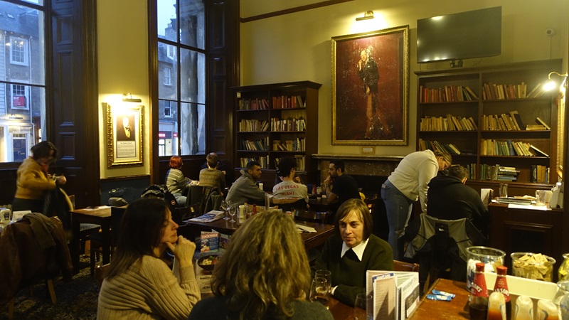 Να σας συστήσουμε την παραπάνω επίσης παμπ/εστιατόριο που λειτουργεί με κρατήσεις κι αποτελεί στέκι των πιο ευκατάστατων του Εδιμβούργου και των επισκεπτών. Μερικές δεκάδες μέτρα μακριά από την προηγούμενη παμπ/εστιατόριο που επισκεφθήκαμε κι ήταν για όλους. Αμέσως μετά περάσαμε έξω από αυτό το φαντασμαγορικά στολισμένο νεοκλασικό μέγαρο του 19ου αιώνα που κι αυτό ήταν τράπεζα. Μετατράπηκε εδώ και μερικές δεκαετίες σε εστιατόριο, κλαμπ, παμπ. Πολυμήχανοι οι σκωτσέζοι δεν βρίσκετε; Δεν αφήνουν τίποτα να πάει χαμένο. Και τολμηροί στις μεταλλαγές...
