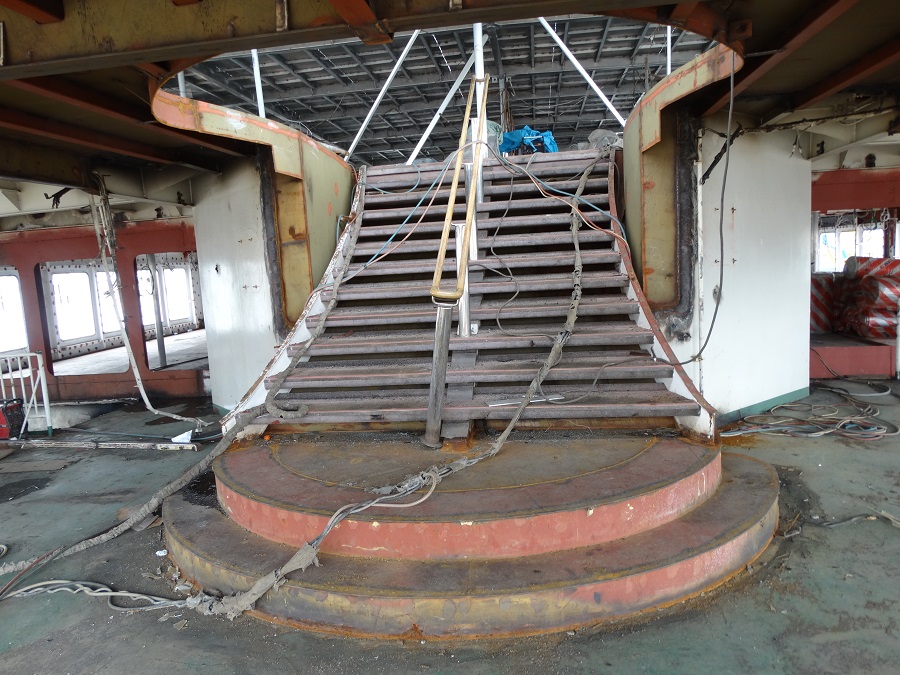 Η γιαπωνέζικη σκάλα βρήκε τώρα νέα θέση μέσα στο πλοίο.