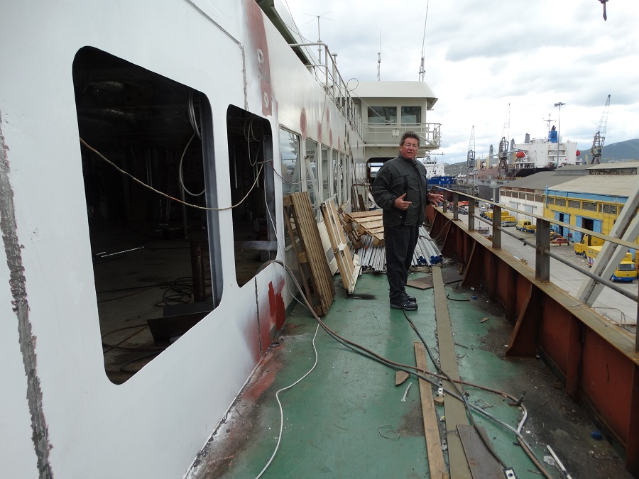 Με παιδικό ενθουσιασμό με ξενάγησε ο ίδιος στο νέο SuperFerry που «χτίζεται» καθημερινά τώρα στο Πέραμα. Με γύρισε ολόγυρα να το δω. Μου εξήγησε για τις μεγάλες μετατροπές: στην πλώρη, στην πρύμη, στα σαλόνια, στις σκάλες, στις νέες εισόδους για τους επιβάτες, στις νέες μεθόδους διάσωσης. Το πλοίο δεν θα έχει βάρκες!!! Θα έχει πλατφόρμες διάσωσης!!! Θα μπορεί σε περίπτωση κινδύνου μέσα σε 30 λεπτά της ώρας να κατεβάζει 2000 επιβάτες στην θάλασσα με πλήρη ασφάλεια!!!