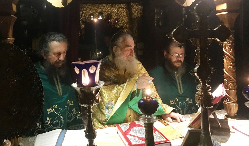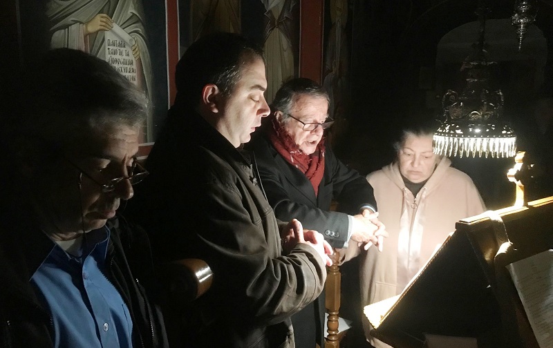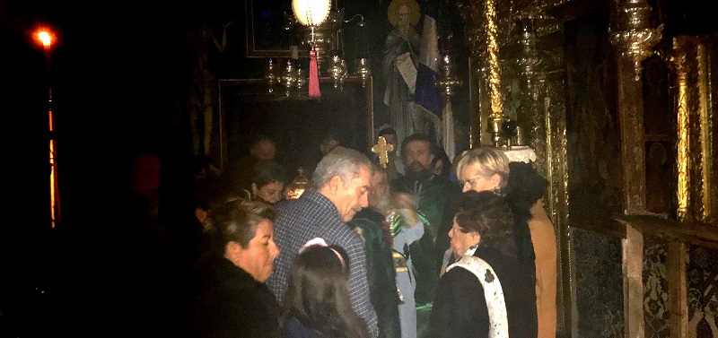 Ο αειθαλής Γέροντας Ευδόκιμος πρώτος-πρώτος στην Χριστουγεννιάτικη λειτουργία με το βιβλικό ύφος και τους απλούς τρόπους δίνει τον τόνο της γιορτινής θρησκευτικής μέρας (φωτ. Χαρίδημος).