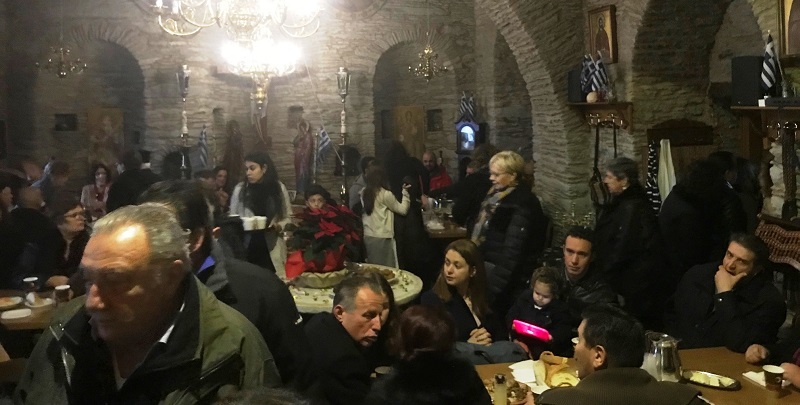 Το αδιαχώρητο στην τραπεζαρία και να σκεφτεί κανείς πως αρκετοί έφυγαν αμέσως μετά την λειτουργία γιατί λόγω μέρας γιόρταζαν και πήγαν για την προετοιμασία του χριστουγεννιάτικου τραπεζιού στα σπίτια τους (φωτ. Χαρίδημος).