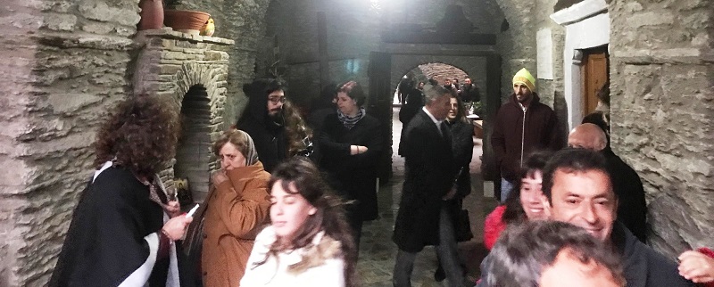 Γεμάτοι και οι στεγασμένοι διάδρομοι της Μονής μιας και το κρύο, το χιονόνερο και η ομίχλη κρατούσαν όλους μέσα ή σε στεγασμένους χώρους (φωτ. Χαρίδημος).