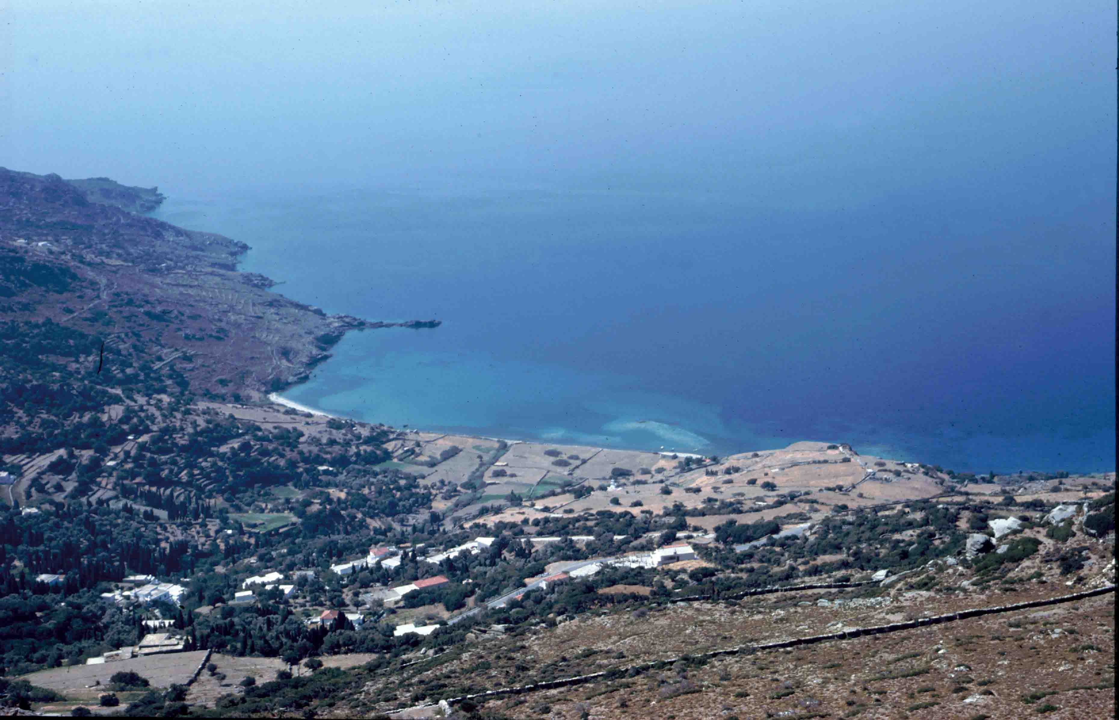 Η έντονη κατωφέρεια του εδάφους κατέστησε απαραίτητη την κατασκευή πολλών ανδήρων (αιμασιών), που κλιμάκωναν την απότομη πλαγιά, δημιουργώντας εκτάσεις καλλιέργειας, βοσκής και δόμησης. Η εικόνα μας φέρνει στο νου την παρατήρηση του Ισοκράτους (Πανηγυρικός 132): «…τοὺς νησιώτας, οὓς ἄξιόν ἐστιν ἐλεεῖν, ὁρῶντας τούτους διὰσπανιότητα τῆς γῆς ὄρη γεωργεῖν ὰναγκαζομένους…». Εντοπίσθηκαν σαράντα επτά αναλημματικοί τοίχοι (δηλαδή παραβολές) που στήριζαν τα άνδηρα αυτά, ο αρχαιότερος από τους οποίους χρονολογείται στα τέλη του 6ου αιώνα π.Χ., οι περισσότεροι όμως κτίστηκαν στον 4ο και 3ο αιώνα π.Χ., περίοδο όπως φαίνεται ακμής και επέκτασης της πόλης και εντατικοποίησης της καλλιέργειας της γης.