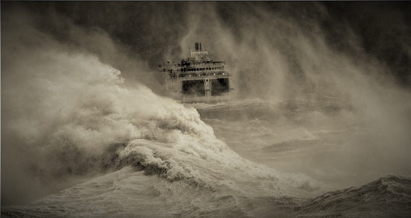 Η "κουρτίνα" της βροχής έχει πια απλώσει σε όλο το μήκος της θάλασσας. Έχουμε εστιάσει στην καταιγίδα, που έρχεται και στην Χώρα, που ακίνητη περιμένει. Οι δύο πλευρές απέχουν ελάχιστα η μία από την άλλη...