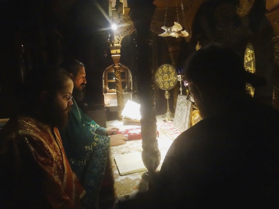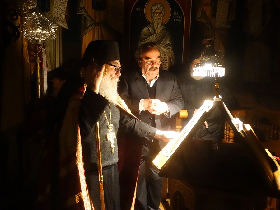 Συμπροσεύχονται οι π. Αέτιος, π. Ευδόκιμος, π. Φιλάρετος (φωτ. Εν Άνδρω).