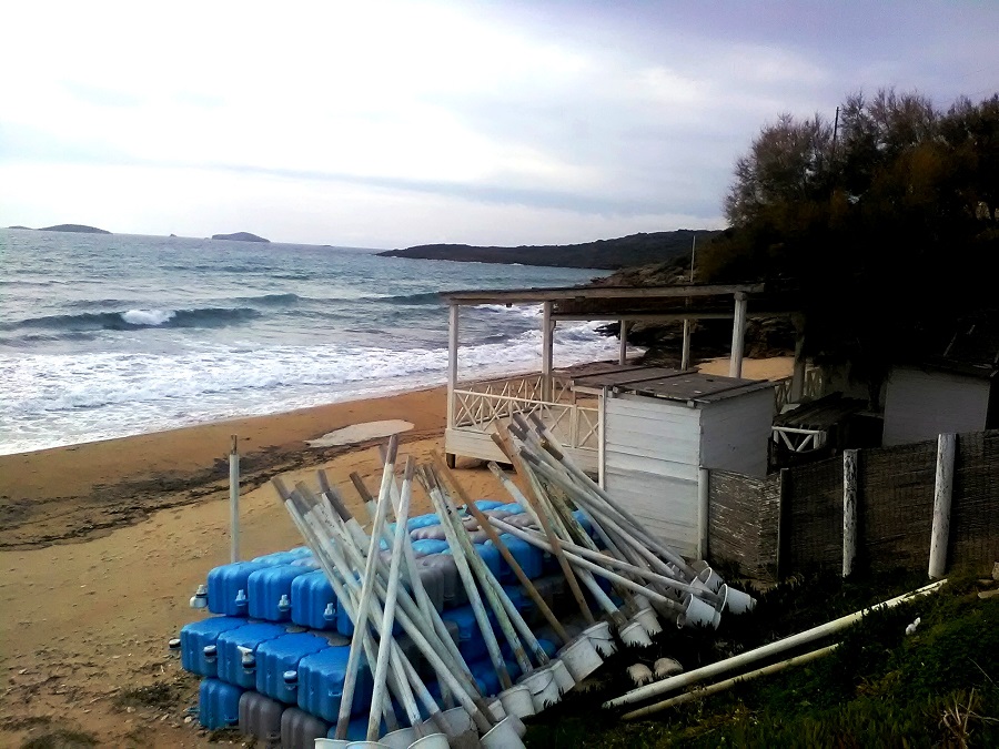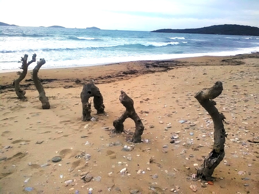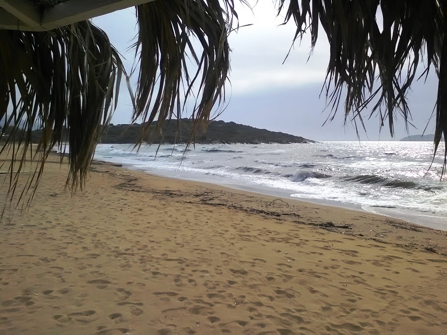 Η μυρωδιά της αλμύρας και το βουητό των κυμάτων σε φέρνουν κοντά στη θάλασσα. Ο σορόκος είναι άγριος καιρός. Το αντιμάμαλο κτυπάει στην αμμουδιά και αφήνει πίσω του μαχαιριές. Τρώει τα ξύλα. Σκάβει το χώμα. Ξεθάβει πέτρες και βράχια. Από πάνω η Κουβάρα φορτωμένη σύννεφα. Προς το μεσημέρι ο καιρός αγριεύει. Γύρω μια παράξενη ερημιά.