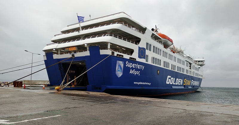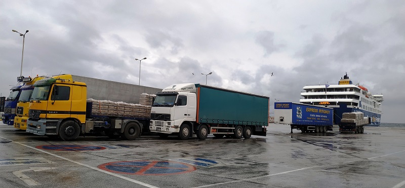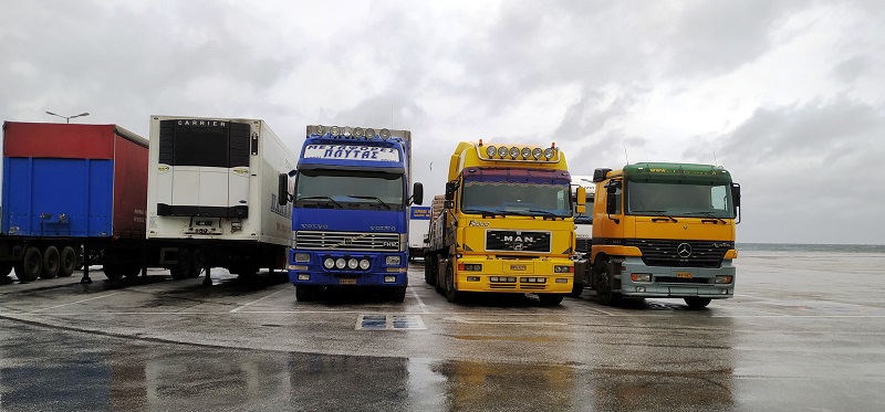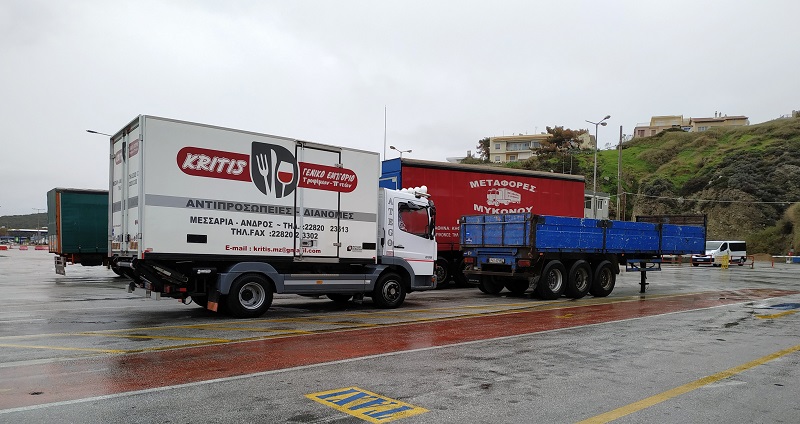 Το φορτηγό της Άνδρου περιμένει κι αυτό πλάι στα Μυκονιάτικα και στα Τηνιακά. Θα ξεκινήσουν πάλι αύριο να ταξιδέψουν στα νησιά (φωτ. Εν Άνδρω).