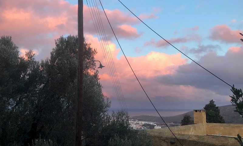 Το επόμενο απόβραδο. Η σκόνη έχει αποτραβηχτεί στον ορίζοντα. Όμως οι χρωματισμοί της στα σύννεφα παραμένουν κι απόψε έντονοι κάνοντας τον ουρανό να κοκκινίζει παράξενα και τον ορίζοντα να θαμπώνει ακόμα σκονισμένος. Κοιτάς τον ορίζοντα εκεί που η γη και ο ουρανός σμίγουν. Ακόμα η σκόνη χρωματίζει έναν ουρανό που περιέχει κάτι από το παράξενο φαινόμενο που ήρθε από την Αφρική... (φωτ. Χαρίδημος).