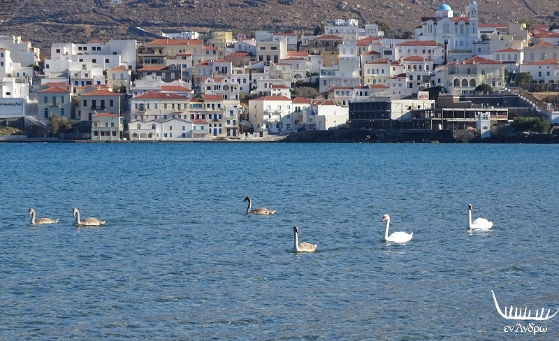 Είναι όμως η Άνδρος και το καλοκαίρι που επιμένουν. Πάνω που λέγαμε πως "πάει πια έφυγε" το καλοκαίρι αυτό ξανάρθε από την πίσω πόρτα του Οκτώβρη! Επέστρεψαν και οι κύκνοι στο Νειμποριό. Είχαν φύγει ένα διάστημα για να αποφύγουν την πολυκοσμία. Τα κυκνάκια τους έγιναν κοτζάμ κύκνοι κι άρχισαν να ασπρίζουν. Αρχίζουν πια να σχηματίζουν αποικία...