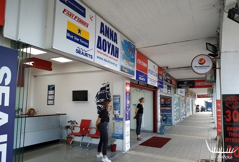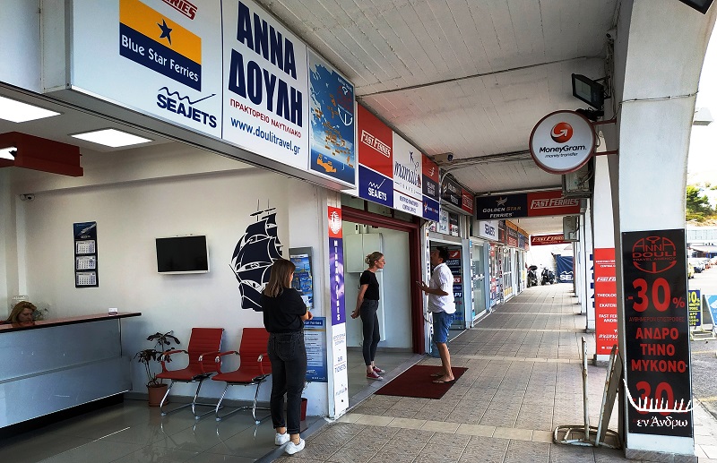 Εκείνη την ώρα έφευγε το Super Express για Άνδρο-Τήνο-Μύκονο-Πάρο κι έδενε το Super Runner από Σαντορίνη-Μύκονο-Τήνο. Η πελατεία έφυγε. Οι πωλητές ησύχασαν κι αυτοί. Μέχρι να κάνει πλησιάσει η ώρα για το επόμενο πλοίο ή να φανούν πάλι κάποιοι πελάτες στο μικρό πρόχειρο πάρκινγ που σταματάνε τα αυτοκίνητα για να πάρουν οι επιβάτες εισιτήριο.