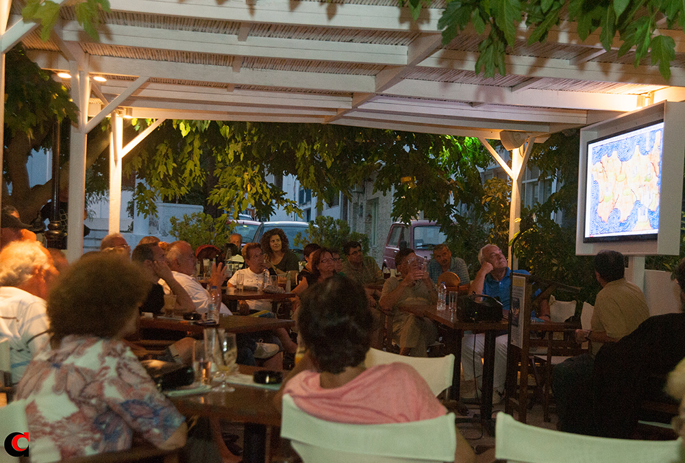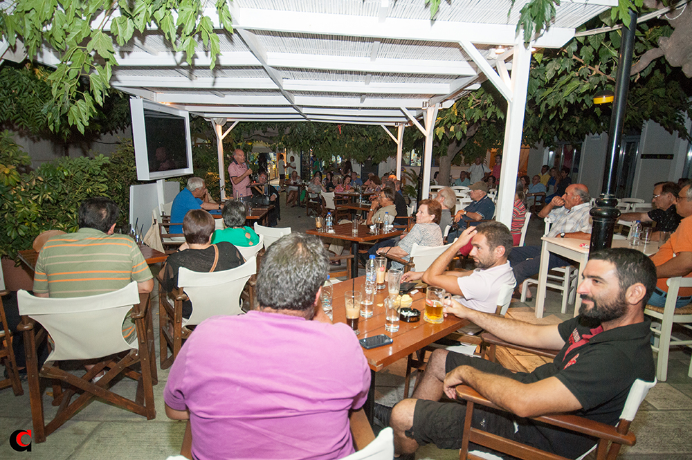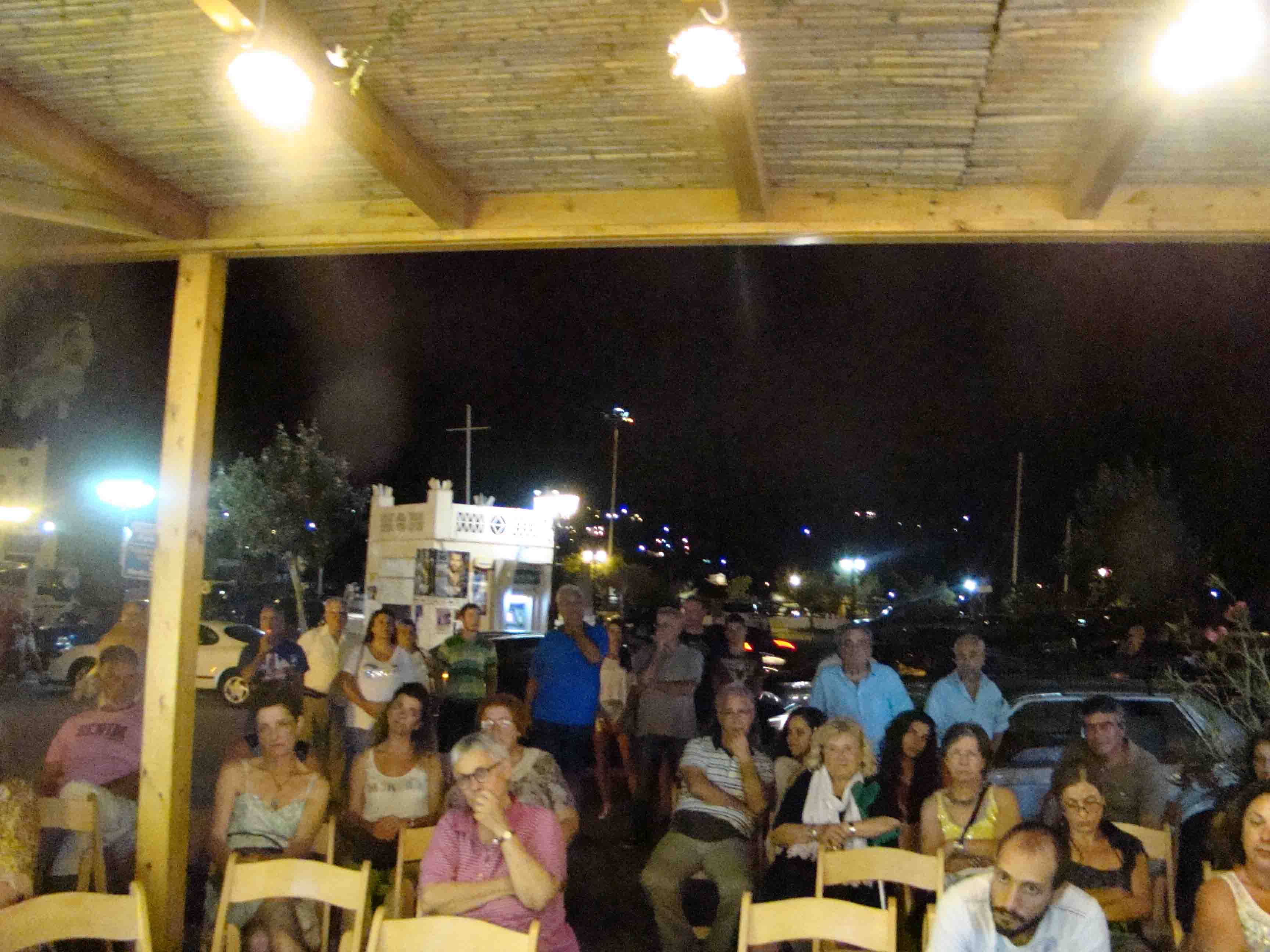 Η εκδήλωση ξεκίνησε με βίντεο και μετά άρχισαν οι ομιλίες. Το όλο γεγονός τράβηξε σε μάκρος, αλλά το «εκπαιδευμένο» κοινό του Γαυρίου αντί να μειώνεται …αύξαινε! Και δεν κουνιόταν! Στο τελευταίο μέρος είχαμε και ορθίους!…