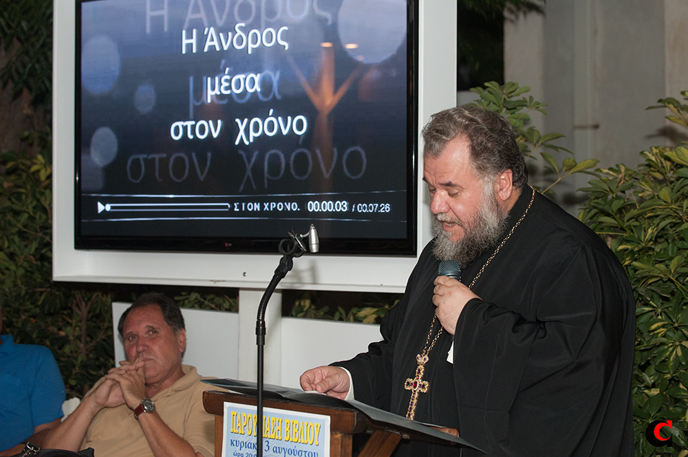 Μετά ο Γιώργος Καμπάνης (στο Κόρθι δεν έφτασε ένας προαναγγελθείς ομιλητής) κράτησε το ακροατήριο με εντυπωσιακό τρόπο περιγράφοντας την αγάπη του για την Άνδρο, αλλά και ένα δύσκολο ταξίδι στο τρίγωνο των Βερμούδων με έμμετρο τρόπο! Κάμποσες σελίδες περιγραφής με ομοιοκατάληκτο στίχο για ένα ταξίδι δεν είναι εύκολο πράγμα. Δίκαια εντυπωσίασε.