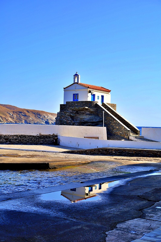 Το ραντεβού με τον Γιώργο Ζαρζώνη, φωτογράφο και κειμενογράφο, ήταν στις 7:15 το πρωί της Πέμπτης 6/8 για καφέ στην Αγορά της Χώρας. Εκείνη την ώρα θα είχε ολοκληρώσει την πολύ πρωινή φωτογράφιση από το Μέσα Κάστρο του εντυπωσιακού πρωινού στο ορθάνοιχτο Κεντρικό Αιγαίο με αναφορά το σήμα κατατεθέν της Άνδρου τον Τουρλίτη. Μετά τον καφέ πήγαμε παρέα στο δεύτερο σήμα κατατεθέν της Άνδρου: την Αγία Θαλασσινή. Ήταν στην Άνδρο για λογαριασμό της μεγάλης αθηναϊκής ιστοσελίδας ATHENS VOICE προετοιμάζοντας ένα μεγάλο φωτογραφικό αφιέρωμα με της αφηγήσεις της διαδρομής που θα δημοσιευθεί την επόμενη εβδομάδα υπό τον γενικό τίτλο ONE DAY... IN ANDROS!