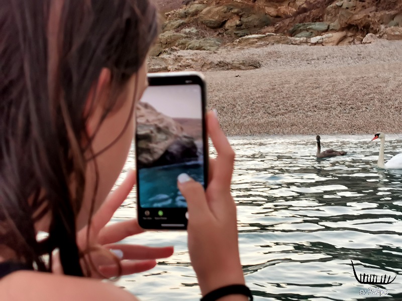 Η όμορφη κοπέλα φωτογραφίζει τους κύκνους που πλέουν παράλληλα με το μικρό σκάφος. Φωτογραφίζει τη ζωή που πλέει μπροστά της. Μεταφορικά και κυριολεκτικά.