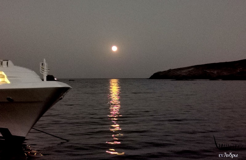 Την είπαν Πανσέληνο του Καλαμποκιού στην Αμερική (ή και «Harvest Moon») γιατί αυτή την εποχή μαζεύουν το καλαμπόκι. Στην Ευρώπη την είπαν «Fruit Moon» (Πανσέληνος των Φρούτων) γιατί μαζεύουν τα εποχιακά φρούτα. Στην Άνδρο η παραπάνω υπέροχη φωτογραφία προκαλεί να την αποκαλέσουμε πανσέληνο του ψαρέματος γιατί με την μπουνάτσα της βραδιάς και το ολόγιομο φεγγάρι γέμισε η θάλασσα ψαράδες...