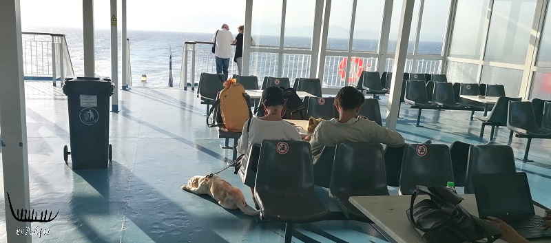 Οι πιο πολλοί έχουν συγκεντρωθεί στα καταστρώματα της πρύμνης, εκεί που χρυσίζουν οι ακτίνες του ήλιου καθώς αργοσβήνει στον Ευβοϊκό. Το μεγαλείο της νύχτας που νικάει το φως της μέρας κάνει κάποιους ιδιαίτερα διαχυτικούς που απολαμβάνουν αγκαλιασμένοι ένα υπέροχο δειλινό, ενώ οι μοναχικοί, ταξιδεύουν στις σελίδες ενός βιβλίου, μέχρις ότου απλωθεί η σκοτεινιά.