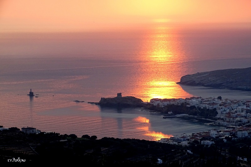Η Άνδρος έχει απίστευτες ανατολές, αλλά και μοναδικά δειλινά. Το νησί έζησε πάντα: ανάμεσα στην Αττική και στο Αιγαίο, ανάμεσα στη μέρα και στη νύχτα, ανάμεσα στο χτες και στο αύριο. Ταξιδεύει αδιάκοπα στο αβέβαιο σήμερα, που περνά και χάνεται...