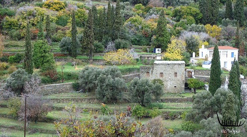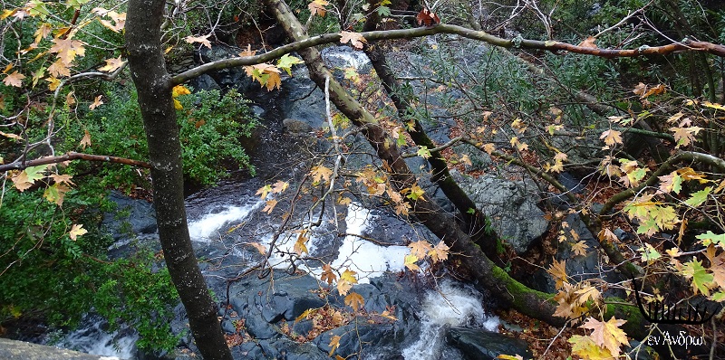 Κατηφορίσαμε στη ρεματιά. Τα νερά με βουή κατέβαιναν με ορμή από τ΄Αποίκια στις Στενιές. Μικροί "θυμωμένοι" καταρράκτες ανάμεσα σε τεράστια αιωνόβια πλατάνια. Στιγμές μια φύσης ξεχωριστής κι εντυπωσιακής. Βρείτε ένα νησί των Κυκλάδων με αυτή την οργιαστική φύση χειμωνιάτικη κι αυτά τα τρεχούμενα νερά. Κάπου ανάμεσα στη βουή των νερών σαν ν' άκουγες το βαλς Νο 2 του Σοστακόβιτς...