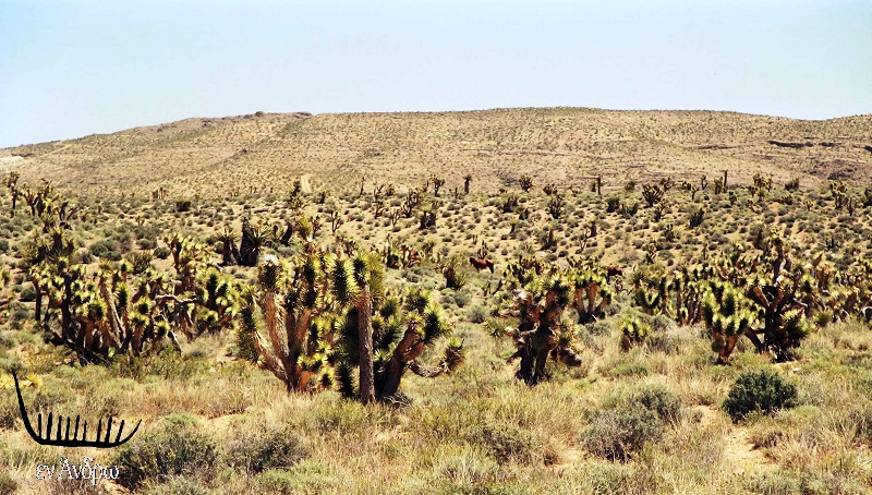 Η πολιτεία της Νεβάδα και το Λας Βέγκας βρίσκονται στην έρημο Mojave (έτσι όπως την ονόμασαν οι πρώτοι κάτοικοι της Αμερικής, οι ινδιάνοι). Μια έρημος διαφορετική από αυτές τις Αφρικής ή της Μέσης Ανατολής. Μια έρημος γεμάτη μια περίεργη και μοναδική ζωή. Το δάσος των κάκτων/δέντρων Jeshua της παραπάνω φωτογραφίας το επιβεβαιώνει.