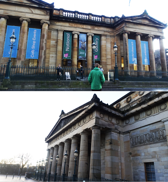 Και στην καρδιά της πόλης η Εθνική Πινακοθήκη της Σκωτίας. Και τα δύο νεοκλασικά κτίρια της που αντιγράφουν την αρχαιότητα και τους αρχαιοελληνικούς αρχιτεκτονικούς ρυθμούς. Το ένα κτίριο με κολώνες κορινθιακού ρυθμού και το άλλο με κολώνες δωρικού ρυθμού. Ο κλασικός πολιτισμός έχει επηρεάσει την πρωτεύουσα της Σκωτίας σε πάρα πολλά σημεία.