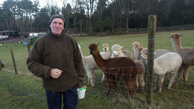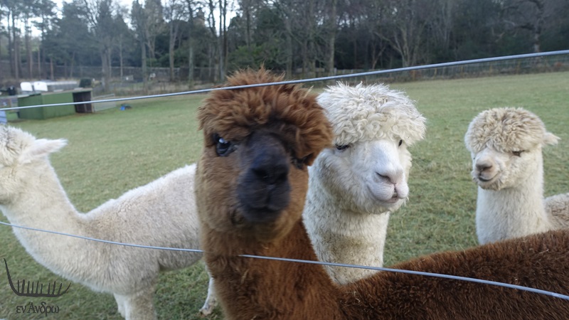 Μάς άφησε να περιεργαστούμε. Τα σπάνια αυτά ζώα ζουν κυρίως στις Άνδεις, στο Περού και τη Χιλή, της Λατινικής Αμερικής. Στο σχετικά κρύο κλίμα του Εδιμβούργου έχουν προσαρμοστεί. Είχε περίπου 80 ζώα. Τα είχε για το μαλλί τους, που είναι ξεχωριστό. Τα ζώα ήταν πολύ φιλικά. Μάς πλησίασαν και μάς κοίταγαν που τα κοιτάγαμε. Τα χαδέψαμε. Όμως όταν κατάλαβαν πως δεν θα τα ταΐζαμε έστρεψαν το ενδιαφέρον τους προς τον σκωτσέζο αγρότη.