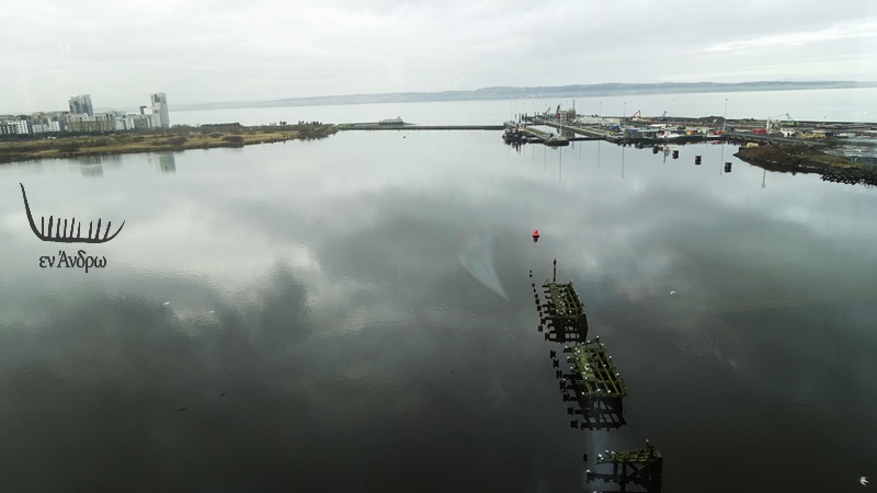 Tο λιμάνι του Leith στο Εδιμβούργο. Πανοραμική αεροφωτογραφία. Λίγο πριν την προσγείωση στο αεροδρόμιο του Igliston του Εδιμβούργου. Η είσοδος του λιμανιού κλειστή. Μάλλον για να αποφύγει τις μεγάλες παλίρροιες της Βόρειας Θάλασσας...